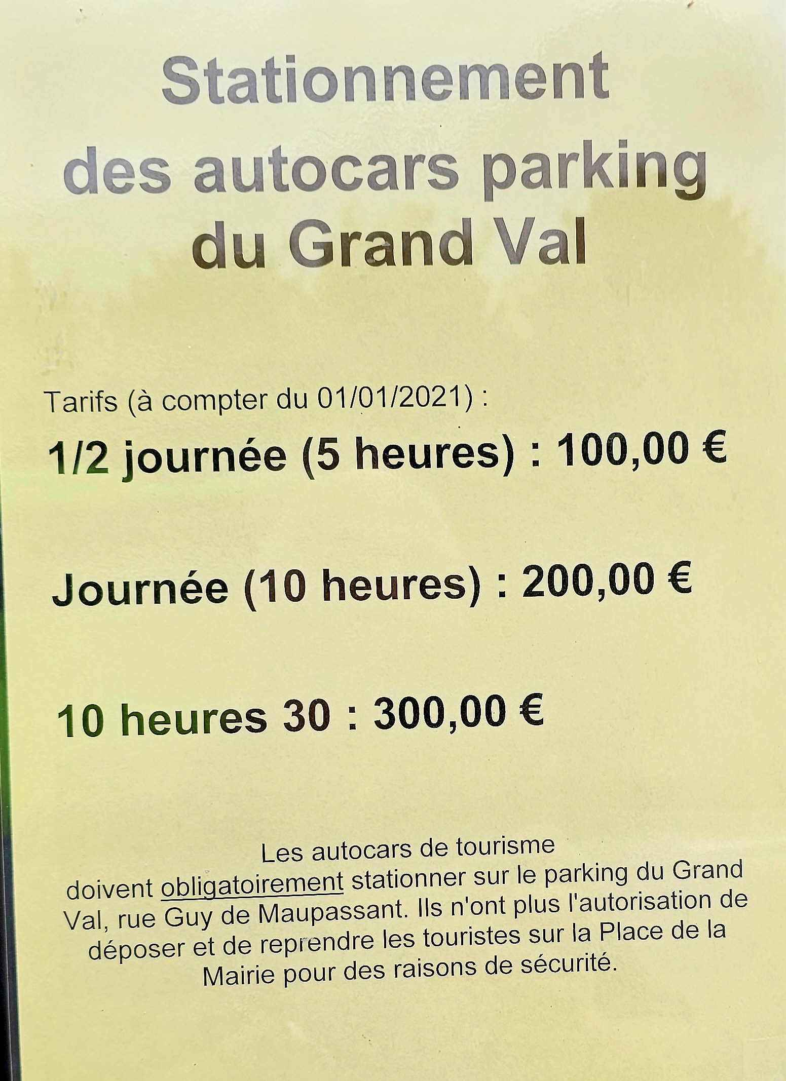 Les places de stationnement pour les bus sont satisfaisantes, mais les frais de stationnement sont exorbitants !